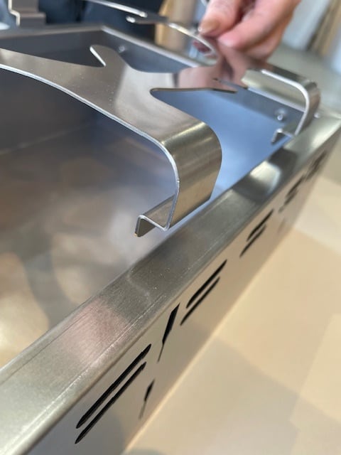 調理スペースが幅約22cm奥行約28cmあり、2種類の調理を同時におこなうことが可能です。炭を片方に寄せて強火にしたりと、火加減が変えられることも長方形サイズになった特長の一つです。
