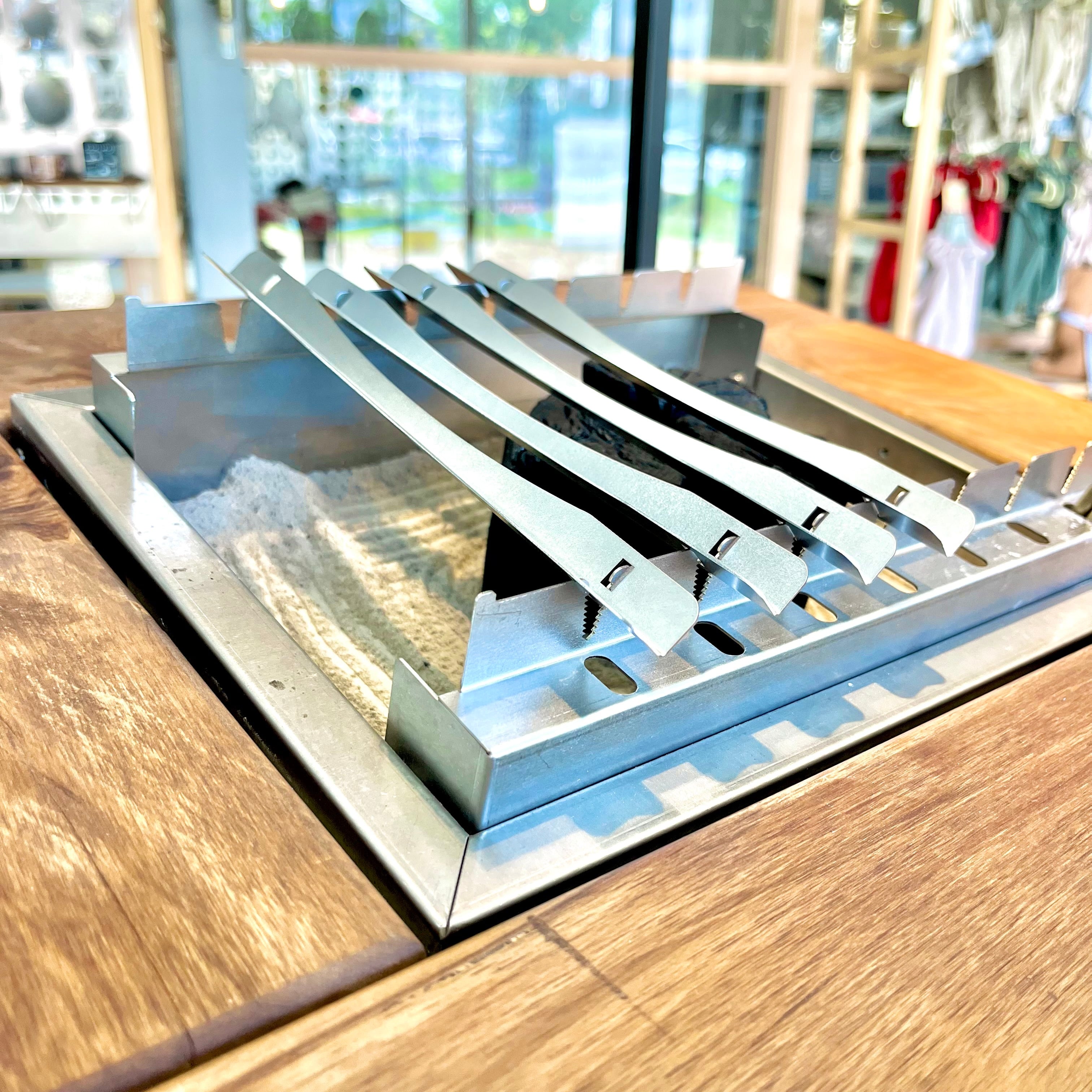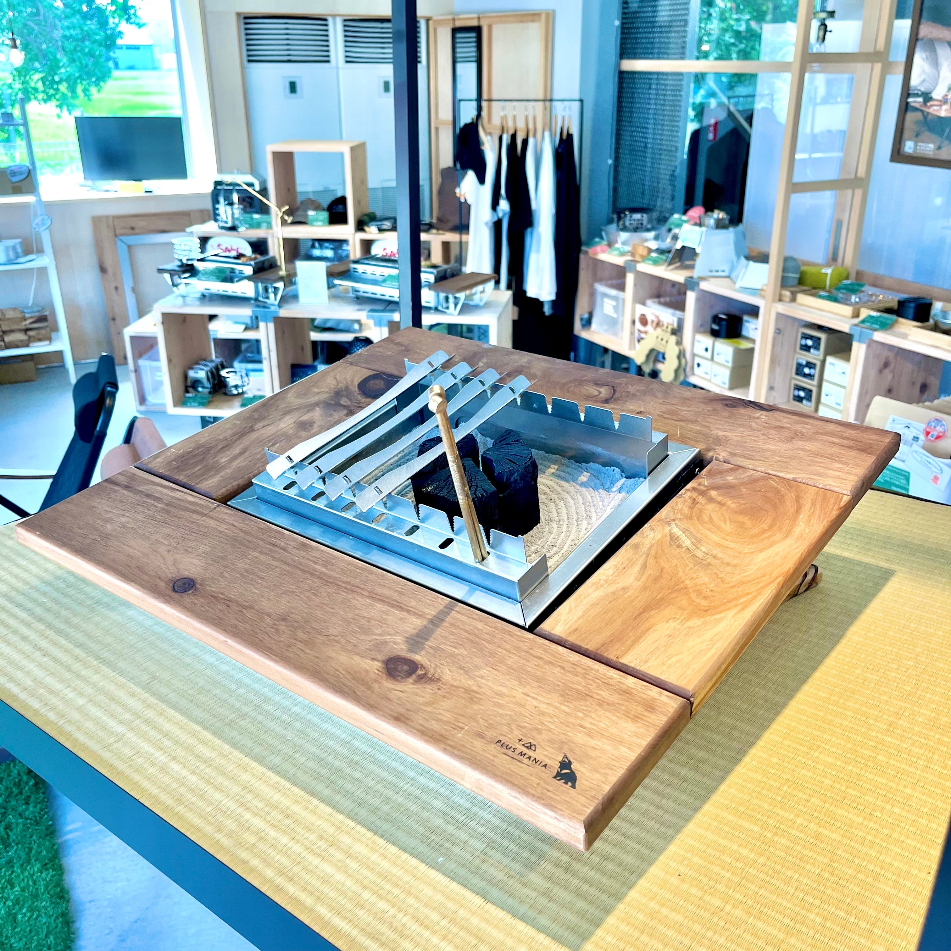 また、付属品の木製置き台を使用すれば本来の囲炉裏らしい直置きスタイルとして使用も可能です。