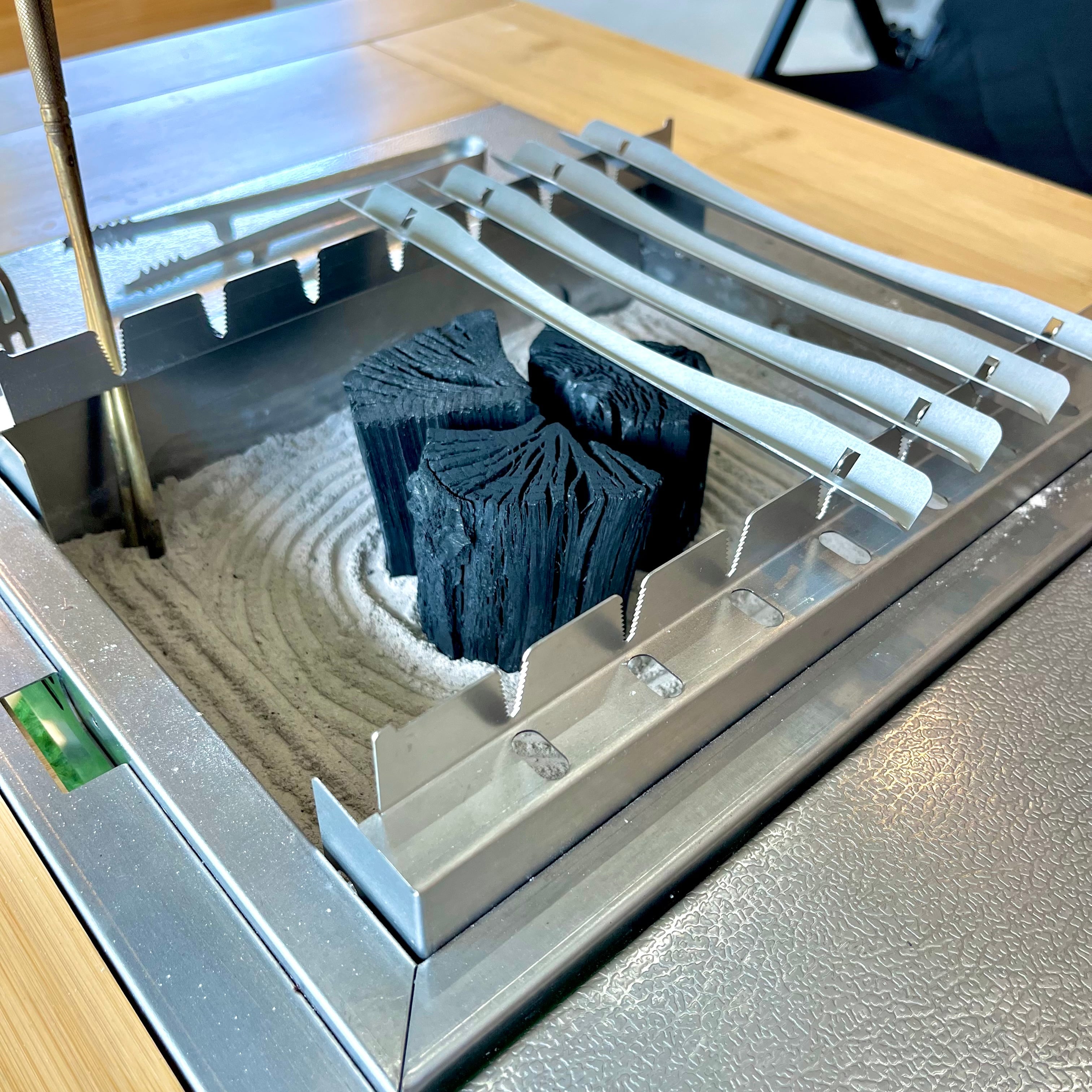 手間のかかる炭火の着火や火消しもIRO+RI本体でおこなえるため手軽に炭火を利用できます。